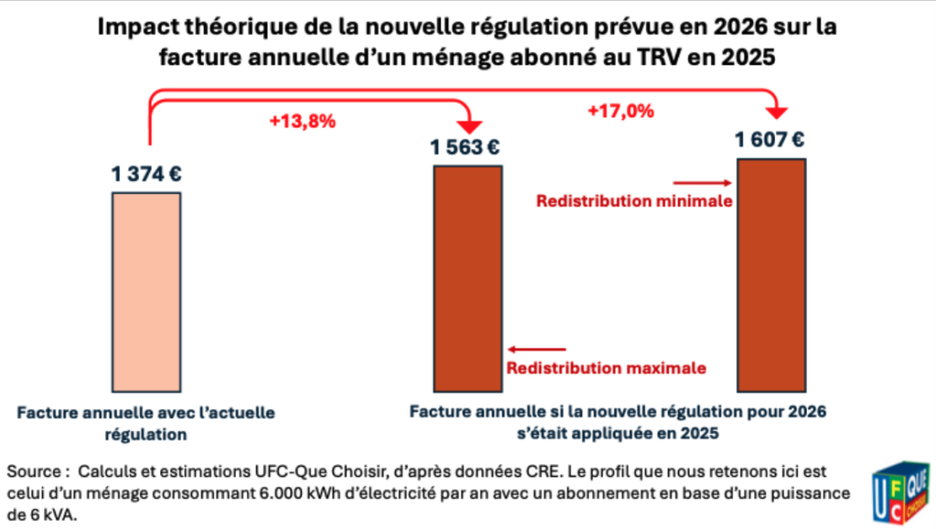 Ainsi, dans leur étude de février 2025.  l’UFC-Que Choisir a projeté une hausse possible du Tarif Réglementé en 2026, estimée entre 13% et 17%.